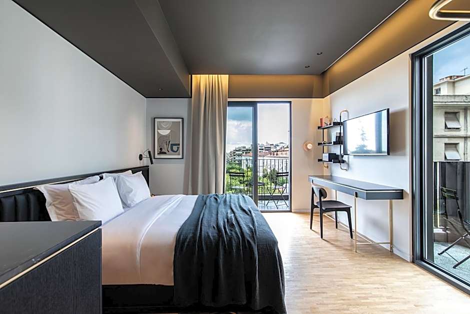 This suite features a terrace, hot tub and air conditioning. There is a pick-up player with a collection of vinyl. The suite offers 180 degree views of the city which extend from the Lycabettus to the sea.